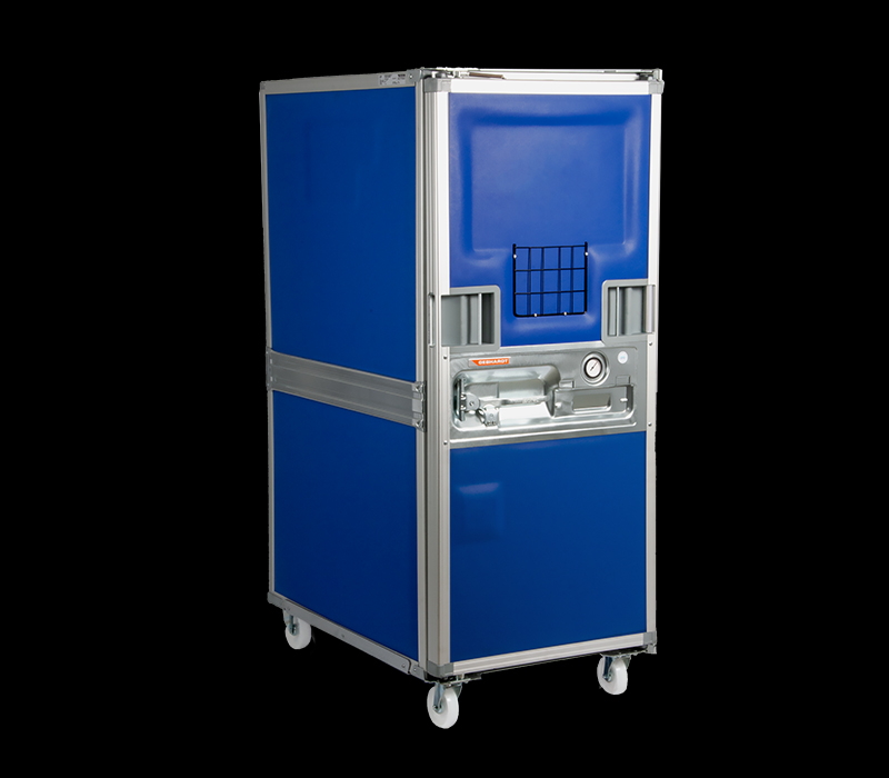De série, o recipiente é equipado com rodízios, mas também pode ser fornecido em um pallet de metal (semelhante ao TBX standard) a pedido.